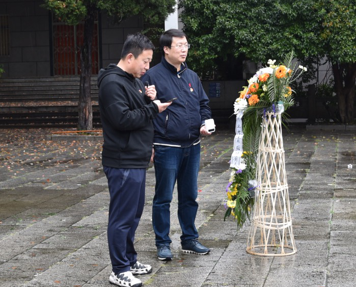领导班子成员率师生代表向烈士敬献花篮,默哀,并依次来到石碑前为施洋烈士献上鲜花,最后列队深深鞠躬。
