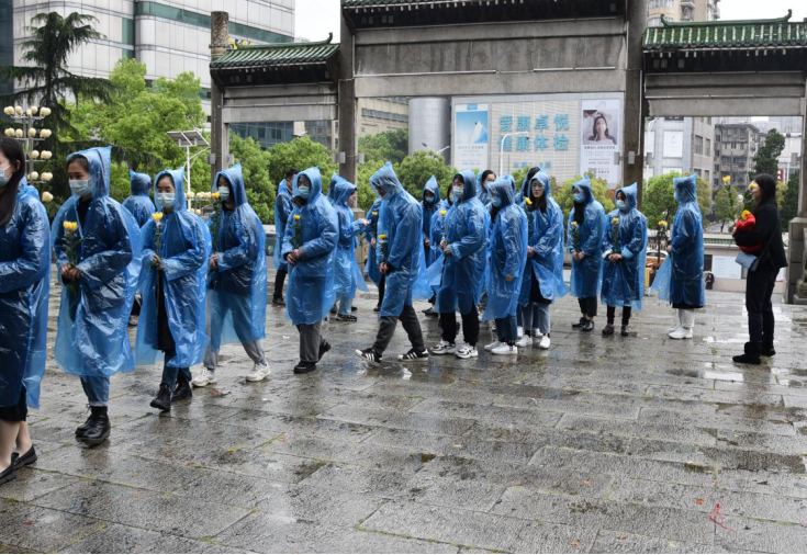 矮垣环绕,松柏拱卫,丝丝雨落,在一片肃穆宁静的气氛中,华中科技大学马克思主义学院领导班子成员率师生代表共40余人于4月2日中午1时许来到位于武昌洪山南麓的施洋烈士陵园,缅怀先烈,重温初心。