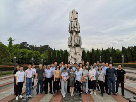 出馆,沿便道前行,便是武汉会战纪念园,这里通过一系列的雕塑展现了全民族抗战恢弘壮阔的历史场景和中国共产党领导下如火如荼的群众性救亡运动。培训班学员先后在抗战纪念园内的胜利广场等纪念设施前参观合影,尤其是牛头山顶的遇难者纪念碑,更是激发了大家悼念逝去的英雄,缅怀为国家捐躯的抗战先烈的炽热情感。