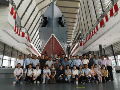 随后,红色研习团团员带领培训班的学员进入博物馆内进行参观,一入展厅,映入眼帘的便是呈立体倒三角形、气势恢宏的中山舰,作为目前中国最大的可移动文物,真是百闻不如一见,学员纷纷在中山舰前面合影留念,盘桓流连,不忍离去。