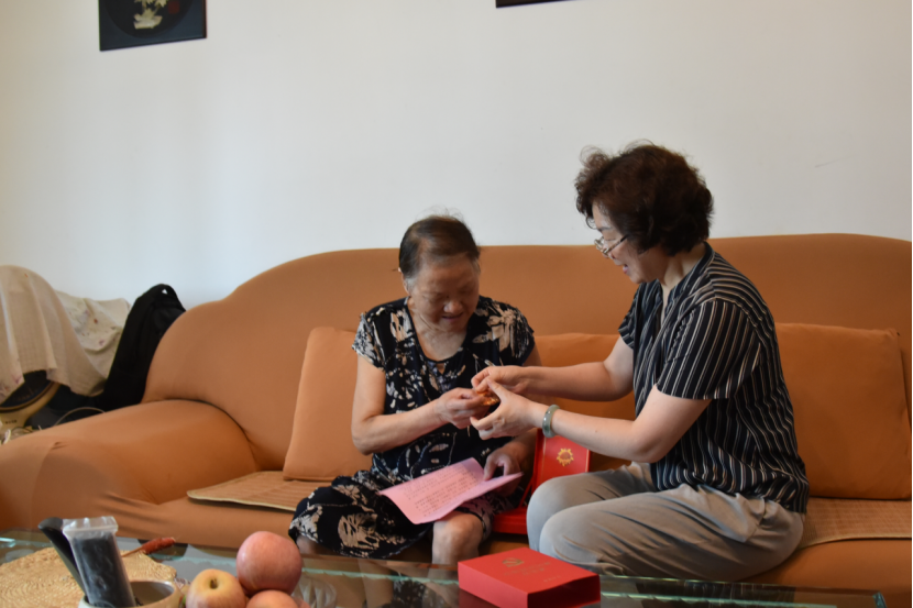 李晓红一行一一来到退休教师朱照家、李炤曾和夏崇贵的家中。李晓红热情地向老同志们问好,庄严颁发了“光荣在党50年”纪念章,并代表学院向他们表达了诚挚的慰问,向他们为学院的贡献表示衷心的感谢。