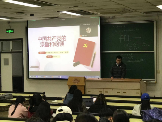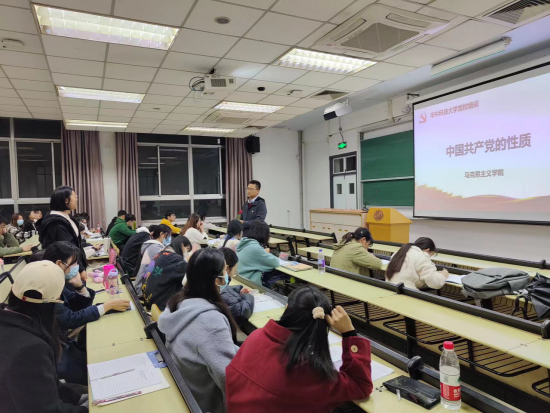 王明飞老师以我们身边的实例为切入口,为大家系统介绍了党的性质的基本内容以及党的指导思想的发展历程。王明飞老师的讲授贴近生活,易于理解,既有历史回响,又有现实关照,引发了在场同学们的强烈反响。