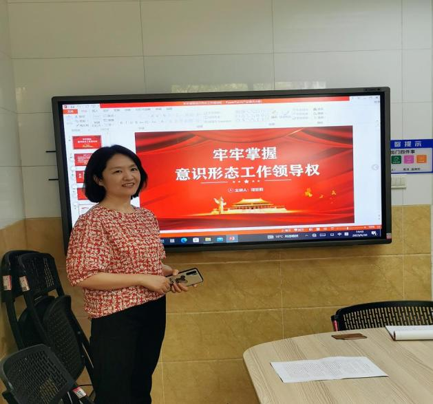随后,谭亚莉围绕“牢牢掌握意识形态工作领导权”为大家讲授了一堂生动的微党课,她对“什么是意识形态?”“为什么意识形态工作极端重要?”“意识形态工作的主要任务”“加强意识形态工作的阵地建设”“加强意识形态工作的有效措施”“正确把握意识形态工作的若干关系”等内容进行了详细讲解。她强调,意识形态工作对于巩固党的执政地位、维护国家的长治久安、实现中华民族伟大复兴的中国梦、调动群众的积极性主动性创造性等都具有极端重要性。当前,我们既要清醒认识到意识形态工作的主要任务,又要以习近平总书记围绕意识形态工作发表的一系列讲话及其所阐释的意识形态工作的重大理论和现实问题为指导思想和根本遵循,坚持正确的原则和采取切实有效的措施,坚定不移做好新时代的意识形态工作。