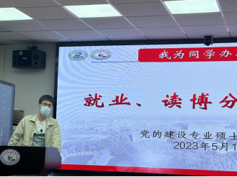 随后,马睿、邹丹和邓玉静三位毕业年级同志分别结合自身就业或申博情况进行经验分享。马睿学长介绍了自身备考公务员、选调生和高校辅导员等的经历,详细介绍了一系列备考技巧和注意事项,建议有志于此的同志们及早谋划、及早开始、反复练习,同时保持良好心态,方能最终“上岸”;邹丹学姐从个人条件分析、目标企业选择、简历制作等方面着手分享了自身的企业求职经验,提出了在读研期间不断提升实践能力、多渠道收集招聘信息、结合自身实际选择目标企业并尽可能扩大选择范围、用心进行准备等建议;邓玉静学姐则从明确目标、申博形式与院校、申博时间线和马理论申博参考四方面介绍了自己的申博心得,建议同志们扎实提高学术能力、审慎考量、认真准备,方能万无一失。三位同志还耐心回答了其他同志提出的问题。经过一一解答,同志们在个人职业生涯规划中存在的种种困惑得到了解决。