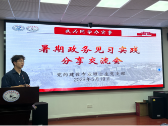 最后,支部书记张悦作总结发言。她对王明飞副书记的精彩讲授以及同志们就就业、申博与政务见习情况进行的无私分享致以衷心的感谢,表示本次活动对于支部党员个人发展与职业规划大有裨益,号召研一的同志重视并积极参与暑期政务见习,利用暑期增长见识、提高综合素质。