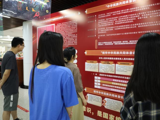 (通讯员:高浩文)为全面贯彻习近平总书记关于加强和改进民族工作的重要思想,深化高校爱国主义教育和民族团结进步教育,华中科技大学于主校区图书馆开设“铸牢中华民族共同体意识”主题展。6月28日,我院习近平新时代中国特色社会主义思想概论教研中心教师党支部组织观展,活动由党支部书记尹旦萍主持。