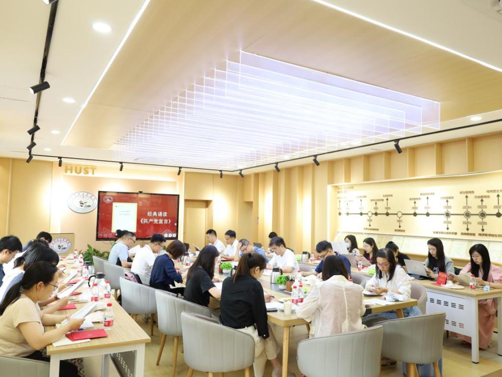 沙龙第一个环节为经典诵读。在庄严的《国际歌》背景音乐声中,在刘思远老师的带领下,全体参会人员共同朗诵了《共产党宣言》的部分内容。