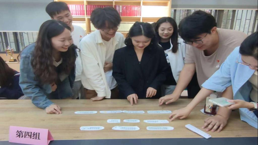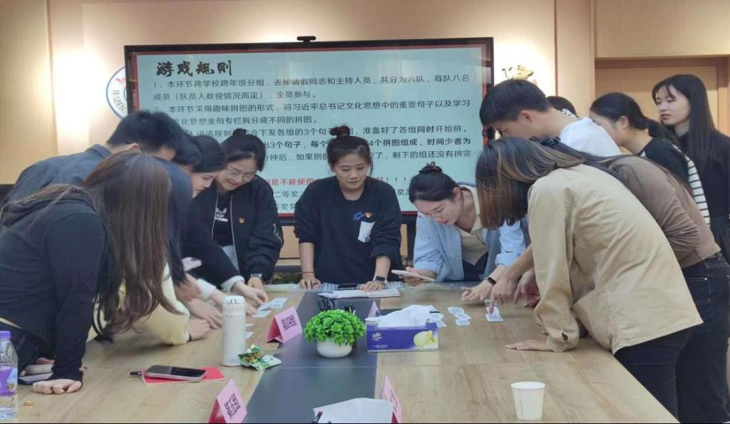 随后,党支部书记刘孟迪组织参会党员进行金句学习互动。该环节采用趣味拼图的形式,以“学习强国”平台中“习近平文化思想金句专栏”为题库,各位同志以小组为单位完成句子组合。通过本次互动,两支部的党员加深了沟通交流,理论学习成果也得以进一步巩固。