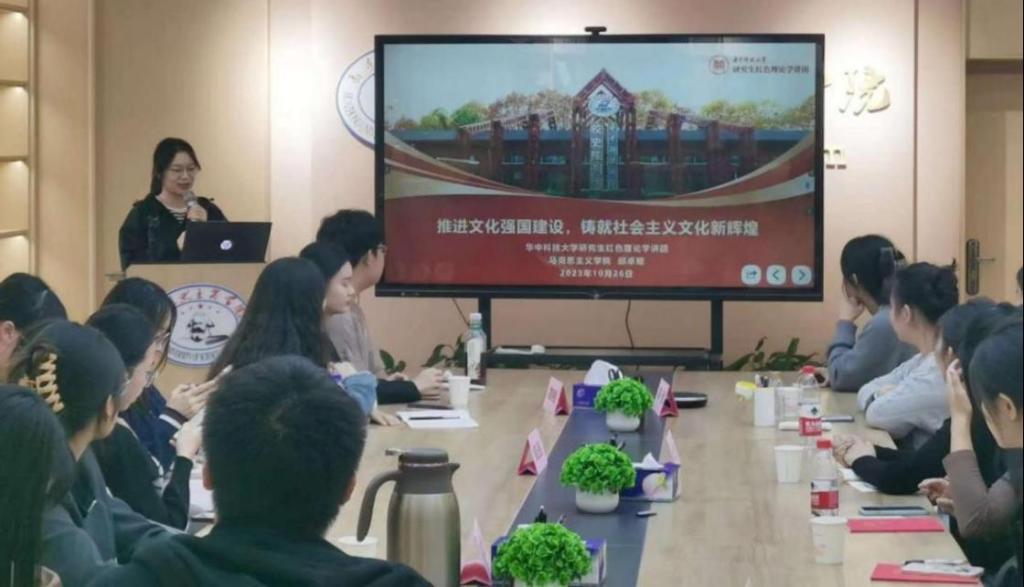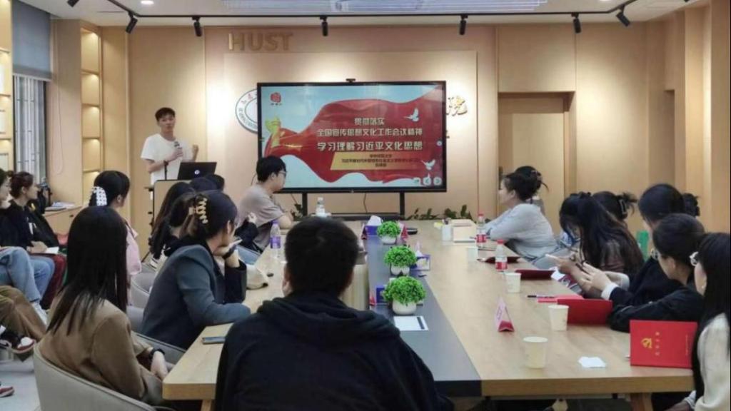 (通讯员:刘孟迪 杨培妍)为学习全国宣传思想文化工作会议精神,贯彻落实习近平文化思想,华中科技大学马克思主义学院思想政治教育专业硕士生党支部与华中师范大学马克思主义学院硕士研究生2023级思想政治教育党支部于10月27日联合举办主题党日活动。我院德育导师翁俊芳出席活动,华科大马院思政专业硕士生党支部、华师马院2023级研究生思政教育党支部30余名同志参与本次活动,活动由支部书记刘孟迪主持。