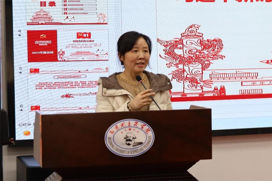 “德法”党支部书记赵志坚对2023年度支部每月常规工作进行了梳理,分享了推进理论宣讲、青年教师成长沙龙等创新活动的心路历程,并就支部探索“党建-业务”融合发展的具体做法进行汇报。