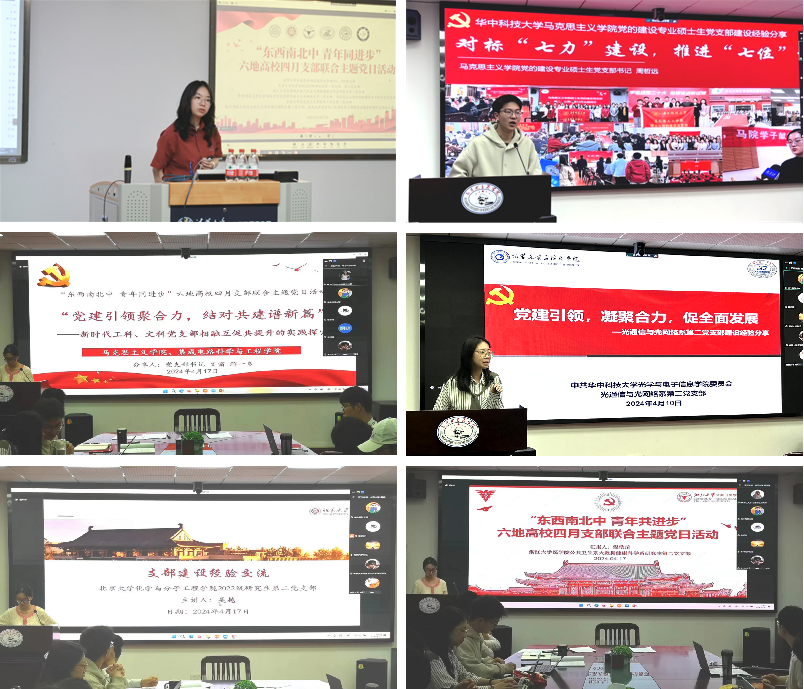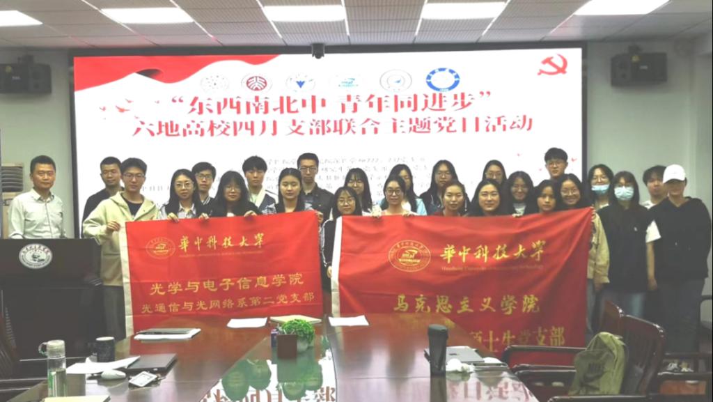 4月17日晚,华中科技大学马克思主义学院党的建设专业硕士生党支部与光学与电子信息学院光通信与光网络系第二党支部联同清华大学、北京大学、浙江大学、吉林大学、电子科技大学六校共十个党支部,以“东西南北中 青年共进步”为主题,联合开展了主题党日共建活动。