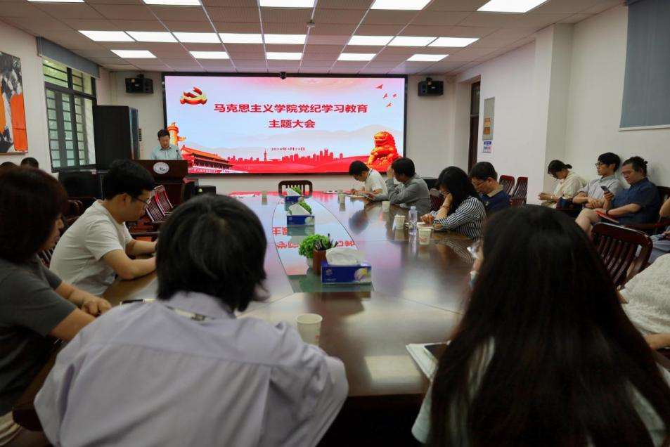 (通讯员:杨皓若)5月23日下午,马克思主义学院于东七楼202会议室召开全院教师大会暨党纪学习教育大会,全体教师参与本次会议。