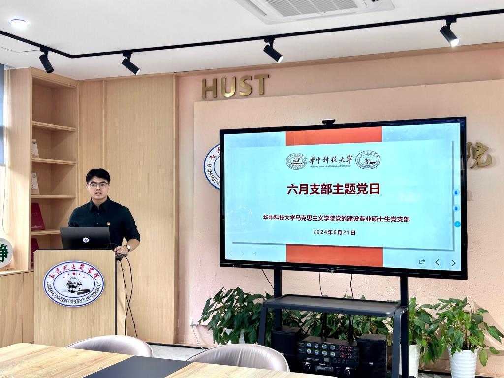 (通讯员:李浩源  图片:万娟、梅孜孜)6月21日下午,马克思主义学院党的建设专业硕士生党支部于东七楼202会议室召开本月主题党日活动。本次活动以“淬炼思想强党性 奋楫扬帆启新程”为主题,由支部宣传委员章和毅同志主持。