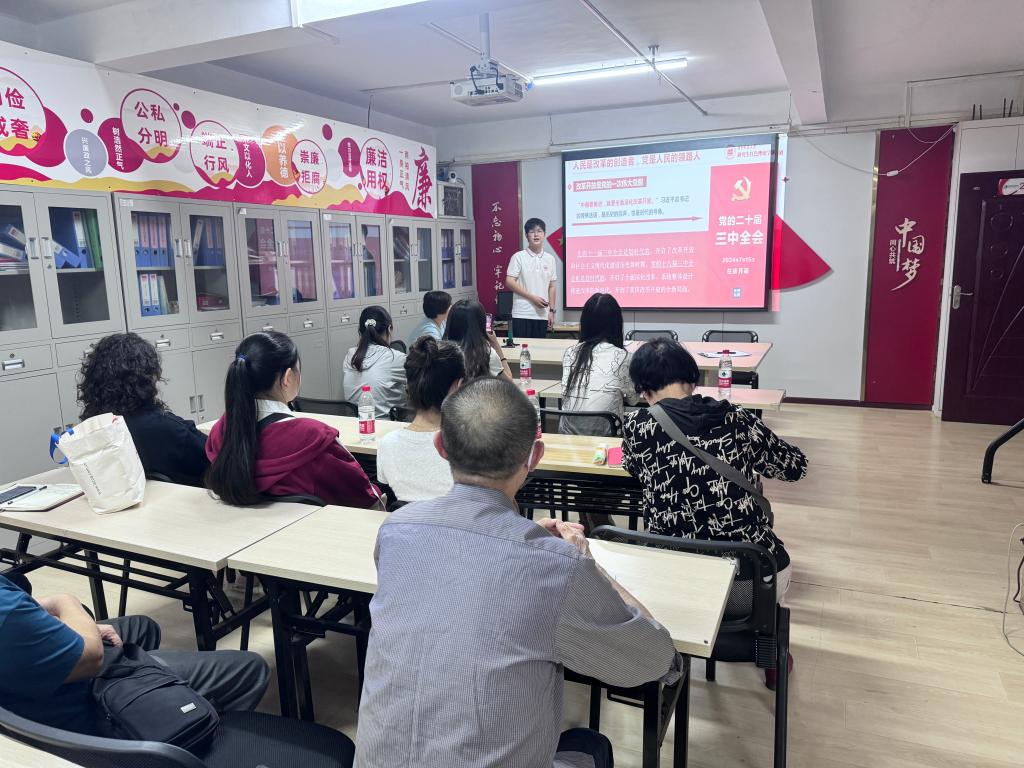 (通讯员:志愿者工作部)为深入学习贯彻党的二十届三中全会精神,确保党的创新理论在基层生根发芽,9月24日上午,马克思主义学院联合碧水社区党支部在社区党员群众服务中心开展“学习贯彻党的二十届三中全会精神”主题党日活动。碧水社区党支部全体党员、我院8名学生志愿者参加本次活动,活动由碧水社区党支部书记程蓉主持。