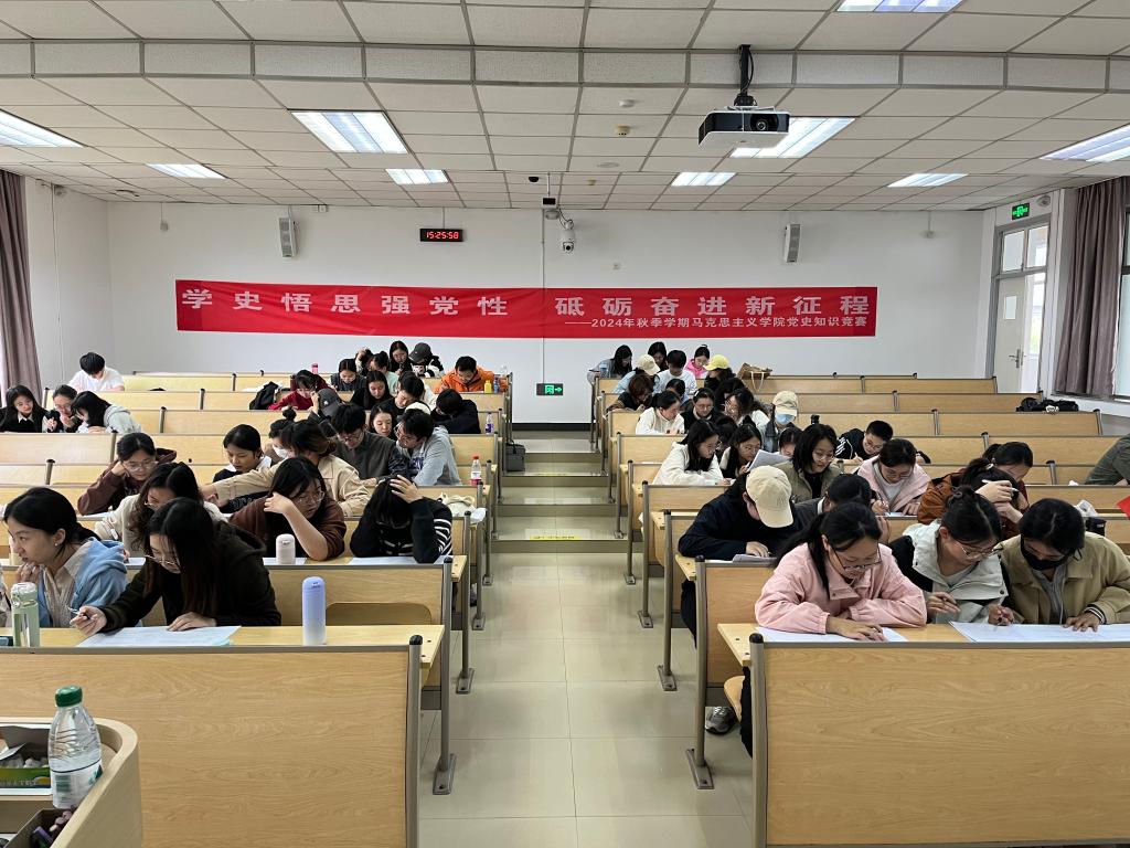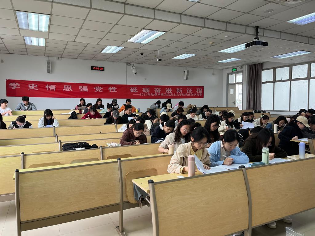 10月27日下午,马克思主义学院第八届研究生党史知识竞赛正式拉开序幕。初赛采取笔试形式,题型包括单选题、多选题和填空题,内容涵盖党的二十大、党史、全国两会、时政以及校史等知识,以全面考察参赛者的理论知识与实践能力。