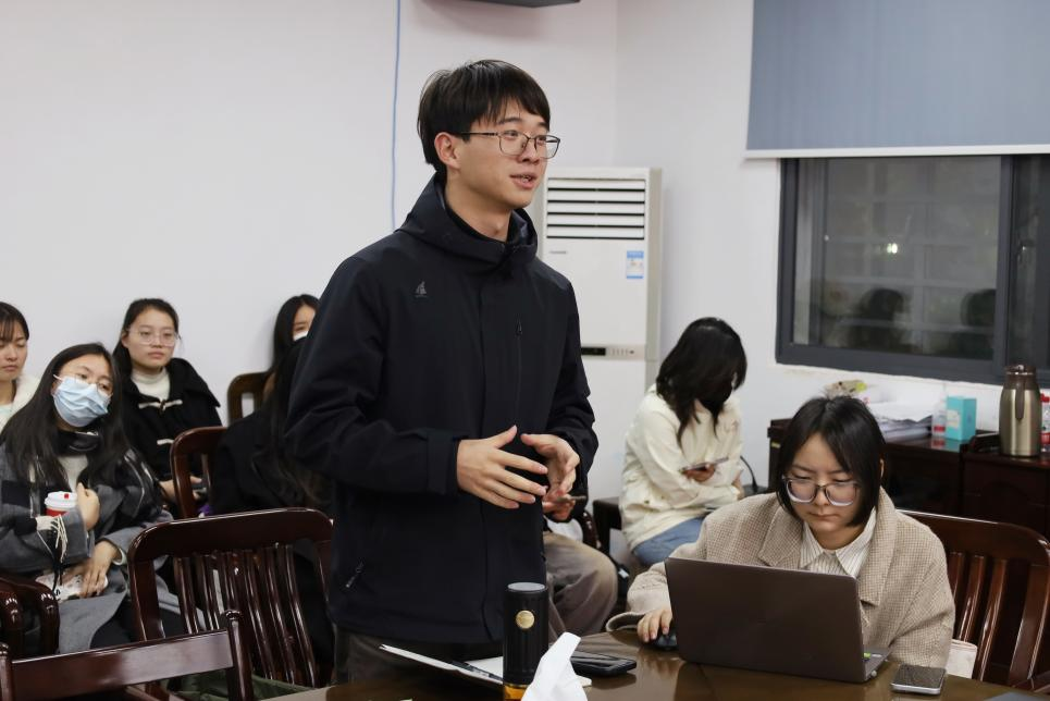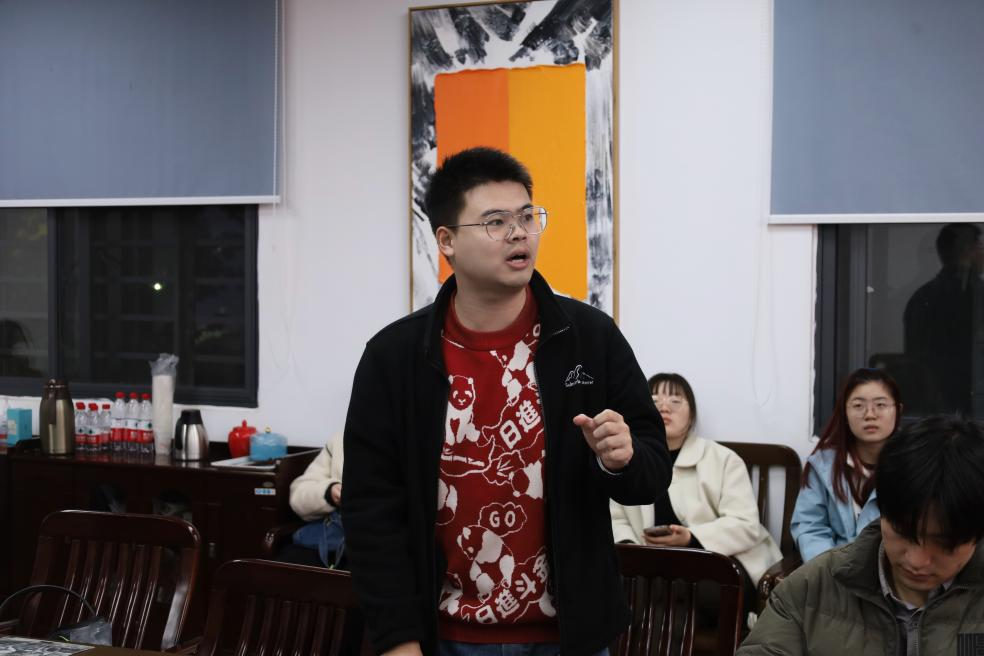 (通讯员:綦坤、吴心旖)11月21日晚,马克思主义中国化研究专业硕士生党支部、马克思主义基本原理专业硕士生党支部11月联合主题党日活动在东七楼203会议室顺利举行。2024年全国“青马工程”培训班学员、中南财经政法大学硕士研究生苏正民受邀作交流分享,两支部全体党员及积极分子参与活动。会议由马克思主义中国化研究专业党支部副书记吴心旖主持。