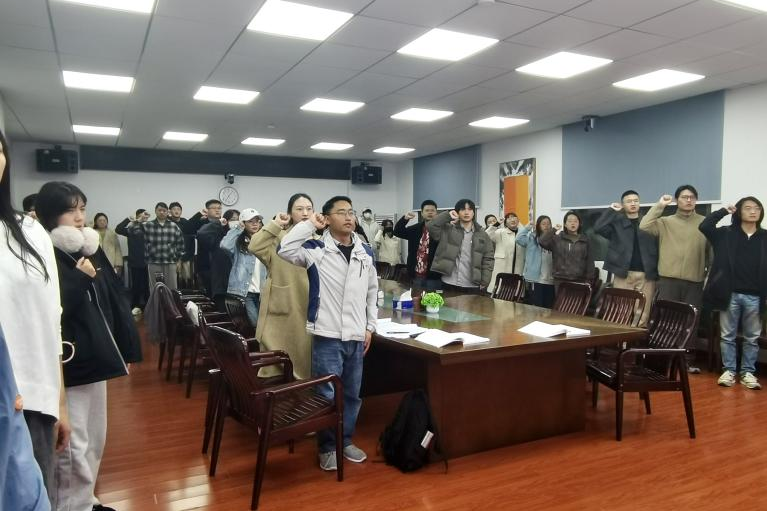 会议伊始,吴心旖同志带领众人重温入党誓词。与会党员集体起立,举起右拳,面对党旗庄严宣誓。初心如磐,使命在肩,在坚定铿锵的宣誓声中,全体党员同志谨记入党初心,恪守对党承诺。