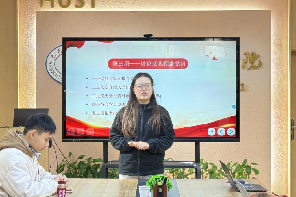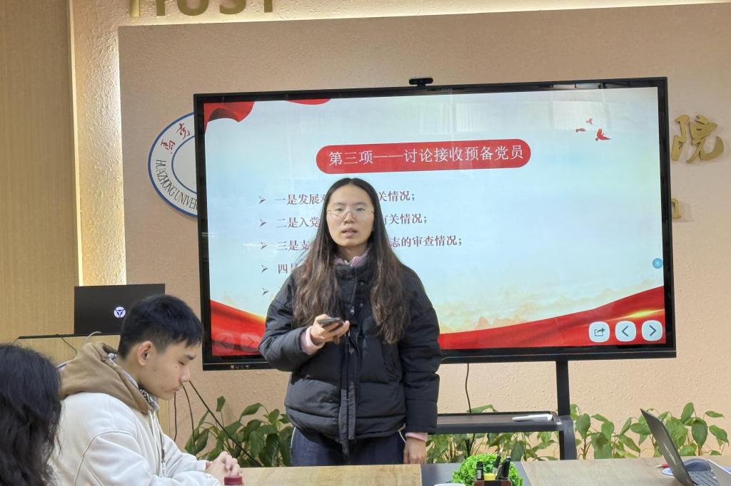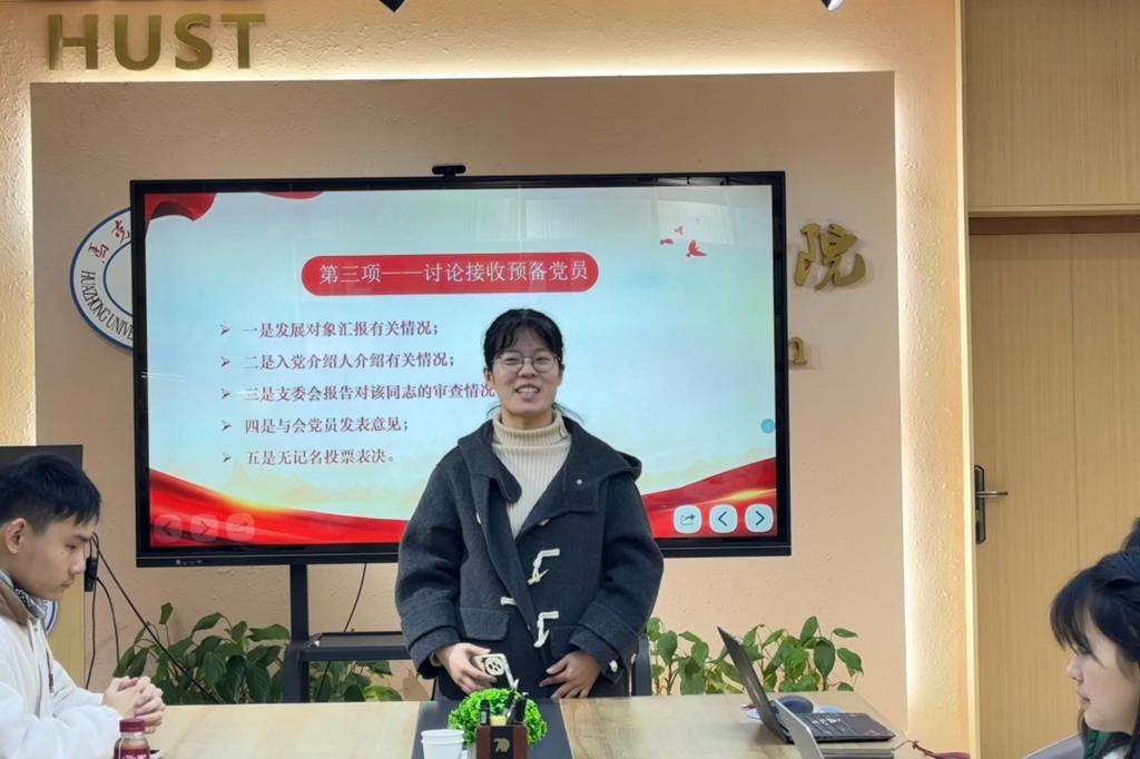 预备党员接收环节结束,杨培妍就支部近期的品牌建设成效进行汇报,并鼓励大家继续努力。随后,支部成员围绕毕业论文的开题情况进行交流。研三的同志们总结和分享了开题阶段可能存在的问题及应对经验,并针对大家的疑问进行了解答。