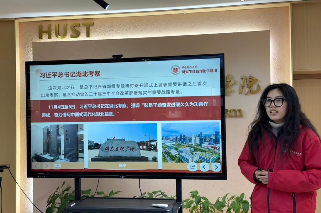 会议伊始,校研究生红色理论学讲团讲师杨岚岚以《复兴之路:中国式现代化的深刻内涵和战略安排》为题为同志们讲授微党课。她结合习近平总书记在湖北考察时的重要讲话精神,为与会同志介绍了中国式现代化的历史脉络、实践展开、鲜明特色与显著优势。随后,支部成员共同观看党的二十届三中全会精神的培训视频,一齐领会其核心要义和实践要求。