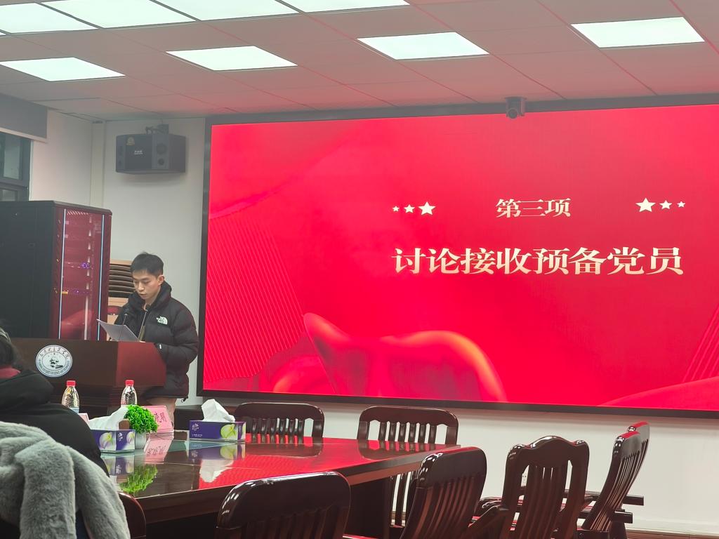接着进入大会第三项,讨论接收预备党员。杜佳宁同志、陈晓同志、王春慧同志、杨柳笛同志、王康瑞同志、彭邦凯同志、陈妍同志共七名发展对象依次汇报了对党的认识、入党动机、个人履历、家庭成员和主要社会关系情况、现实表现、需要向党组织说明的问题等,并由入党介绍人介绍有关情况。随后,支委会报告了对该同志的审查意见,经讨论认为其已基本具备党员条件。经支部大会无记名投票表决,同意接收以上七位同志为预备党员。