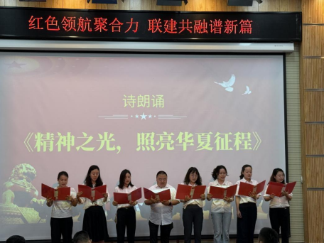 随后,社区党员代表深情朗诵诗歌《精神之光,照亮华夏征程》。饱含深情的朗诵,歌颂了党的奋斗历程、伟大成就和宝贵精神财富,将历史的壮阔画卷和新时代的奋进号角娓娓道来,激励着在场的每一位同志传承红色基因,赓续精神血脉。