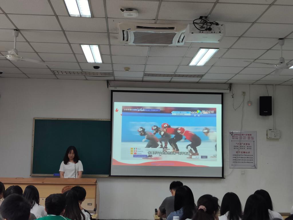 此次主题团日活动以“喜迎二十大、永远跟党走、奋进新征程”为主题,采取自由分组、小组展示的形式进行筹备。各个小组的团员围绕政治经济文化社会生态等主题新时代的青年力量进行了宣讲与解读。第一组从青年抗疫志愿者的行动与担当入手, 对当代大学生们勇担时代使命的无私奉献与勇担责任意志进行了阐发。第二组重温奥运精神从“胸怀大局、自信开放、迎难而上、追求卓越、共创未来”冬奥精神出发,展现了中国实现双奥梦进程中的青年拼搏精神。第三组主讲人沈阳结合自身从军经历从中印边境冲突矛盾事件为切入点思考了当代如何有志气底气和骨气来承担时代使命不负人民期望。第四组以扶贫日记里的青春之歌为主题,通过情景剧形式生动的展示了大学生们投身乡村脱贫攻坚的现实缩影。第五组以学习弘扬塞罕坝精神,做奋斗青年为主题,对塞罕坝的前世今生进行了讲解,并对一代代塞罕坝林场人的精神进行深刻诠释。第六组以青年人的时代担当为主题。展现了百年历史里不变的青春奋斗和青年担当的风采。第七组围绕党领导下的百年青年运动奋斗历程进行宣讲,激励着青年团员作为时代新人要接过时代接力棒,承担起时代所赋予的伟大使命。第八组向大家讲述了生态文明建设中的青年力量。对十八大以来我国的环境保护成就和青年人的奋斗与担当进行了细致讲解。