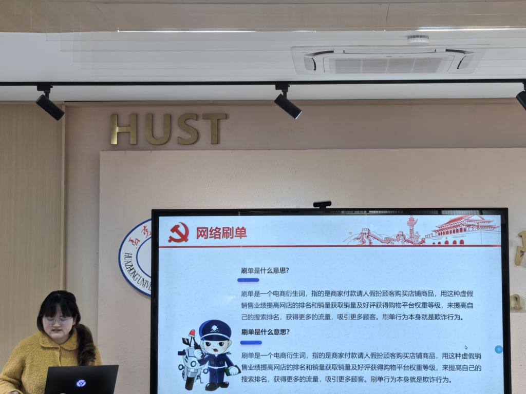活动第三项,陈艳丽开展以“反诈”为主题的安全教育。她以“刷单陷阱”为例,呼吁大家摒弃侥幸心理,切莫陷入“低投入、高回报”的陷阱,提高安全防范意识,切实维护自身安全,共同营造良好的校园环境。