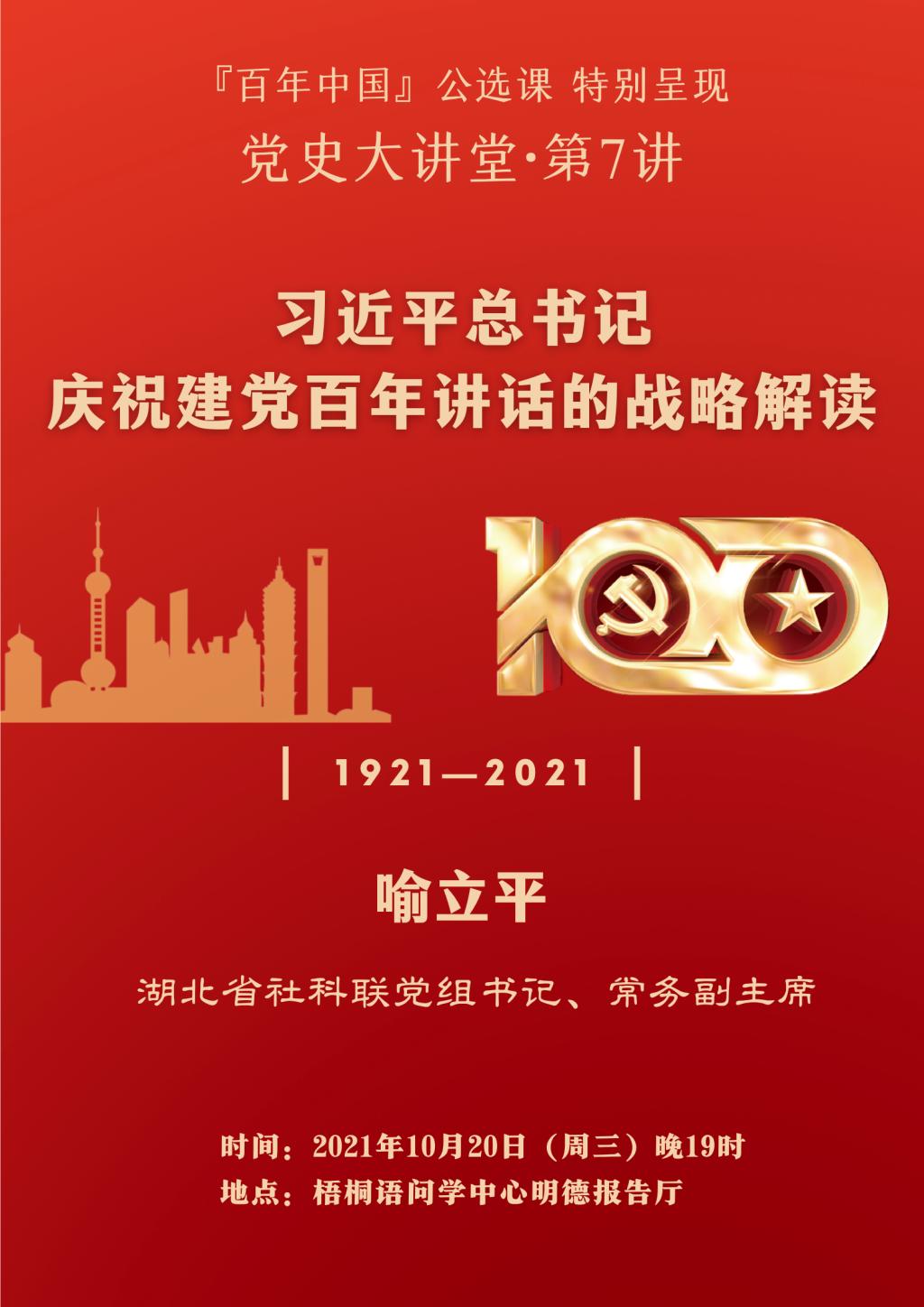 华中科技大学党史大讲堂第7讲:习近平总书记庆祝建党百年讲话的战略解读