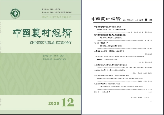 《中国农村经济》是国内农业经济学学科的顶级期刊,亦为我校人文社科领域B类权威期刊。其由中国社会科学院主管、中国社会科学院农村发展研究所主办,是中国有关三农问题的高水准学术期刊。根据《中国学术期刊影响因子年报》(2020版),在农业经济类51种学术期刊中,《中国农村经济》影响力指数和影响因子均名列第一,在489种经济学学术期刊中,《中国农村经济》综合影响因子排名第三,并获评“中国最具国际影响力学术期刊”。