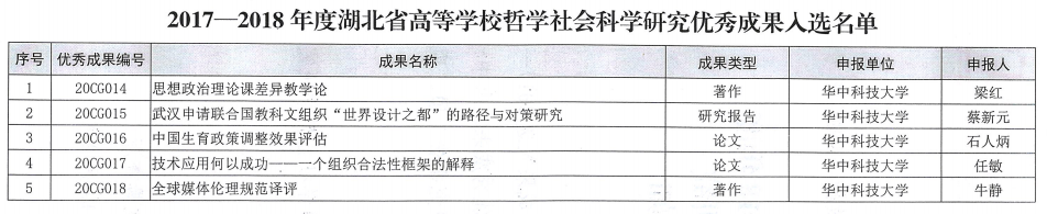 我院梁红教授的著作《思想政治理论课差异教学论》入选2017-2018年度湖北省高等学校哲学社会科学研究优秀成果。