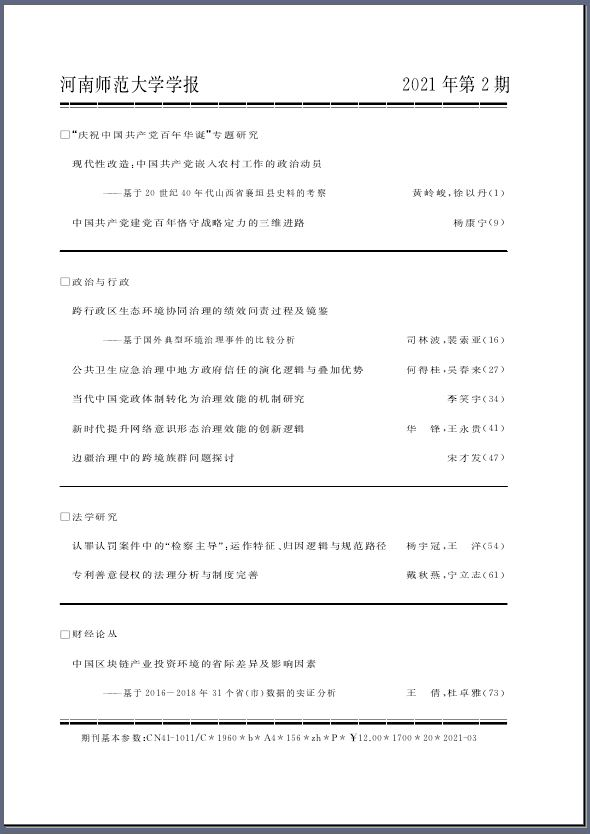 《河南师范大学学报(哲学社会科学版)》2021年第2期刊发了我院黄岭峻教授、徐以丹博士生的学术论文《现代性改造:中国共产党嵌入农村工作的政治动员——基于20世纪40年代山西省襄垣县史料的考察》。文章以20世纪40年代的山西省襄垣县史料为研究对象,从中探讨20世纪40年代中国共产党嵌入农村所经历的政治动员过程,并认为这个过程也是中国共产党将农村地区逐渐推向现代性的具体实践。