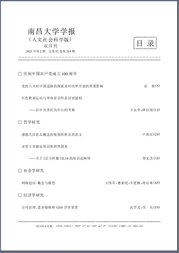 《南昌大学学报》(人文社会科学版)2021年4月第52卷第2期刊发我院岳奎教授的学术论文《党的八大对中国道路的探索及对改革开放的重要影响》。