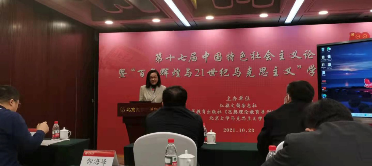 第十七届中国特色社会主义论坛暨“百年辉煌与21世纪马克思主义”学术研讨会于10月23日在北京大学召开。本次研讨会由红旗文稿杂志社、高等教育出版社《思想理论教育导刊》编辑部、北京大学马克思主义学院共同主办。习近平总书记在“七一”重要讲话中指出,以史为鉴、开创未来,必须继续推进马克思主义中国化。高教社与红旗文稿杂志社、北京大学联合举办的这次论坛,就是为了继续深入学习贯彻总书记“七一”重要讲话精神,更好回顾总结建党百年的辉煌历程和宝贵经验,继续深入推进21世纪马克思主义的学术创新发展。
