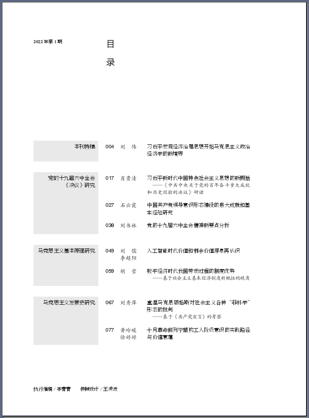 最后,该文阐述了十月革命前列宁塑构工人阶级意识的理论与实践的价值意蕴。认为,列宁早期的思想与实践蕴含着以人民为主体的历史自觉性、政治传承性、现实回应性和价值承载性的理论意涵。强调,为凝聚人民共识开启中华民族伟大复兴新征程,我国须从政党的人民性建设、利益的群众性整合、理论的民族性创新着手,强化政党认同、构建利益认同、增进思想认同,汇聚和激发人民创造伟力。