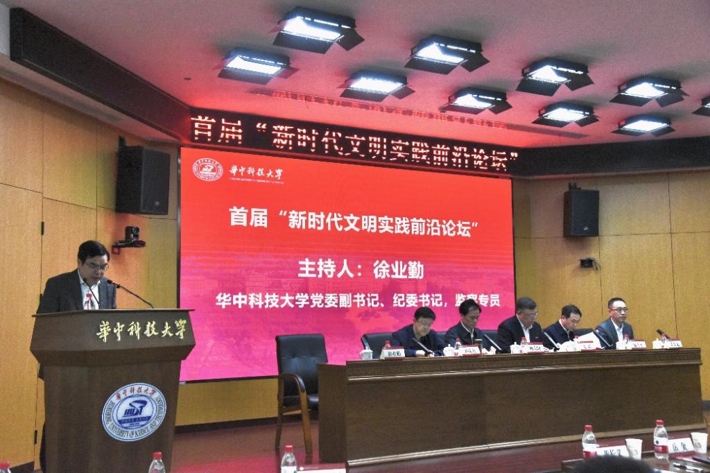 4月15日,首届“新时代文明实践前沿论坛”在华中科技大学举行。中央文明办二局局长熊大同,湖北省委宣传部副部长黄学龙,中国工程院院士、校长尤政,国家哲学社会科学一级教授、原中央党校校委委员韩庆祥,人大常委、教科文卫委员会副主任、湖北省新时代文明实践研究院名誉院长喻立平参加开幕式,开幕式由校党委副书记、纪委书记徐业勤主持。
