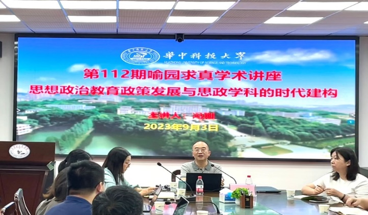(通讯员:向金存、高也淳)9月3日上午,第112期喻园求真学术讲座在东七楼203室举办。北京师范大学思想政治工作研究院院长、马克思主义学院教授、教育部思想政治工作司原司长、中国高等教育学会全国高校思想政治教育研究分会学术委员会主任冯刚应邀作题为《思想政治教育政策发展与思政学科的时代建构》的学术讲座。华中科技大学马克思主义学院党委书记刘雅然,文科处副处长、华中智库副院长杜志章教授,学生工作部副处级干部靖咏安,马克思主义学院副院长谭亚莉教授、副院长李建国教授,机械学院党委副书记段政,武汉理工大学计算机与人工智能学院陈梦霖老师以及马克思主义学院部分硕博研究生参加讲座。马克思主义学院董慧教授主持本次讲座。