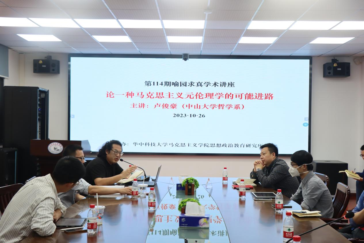 (通讯员:李硕)10月26日晚上,第114期喻园求真学术讲座在东七楼203会议室举办。中山大学哲学系助理研究员卢俊豪应邀作主题为《论一种马克思主义元伦理学的可能性》的学术讲座。我院思想政治研究所所长梁红以及部分老师和硕博士研究生参加讲座,讲座由我院副院长李建国主持。