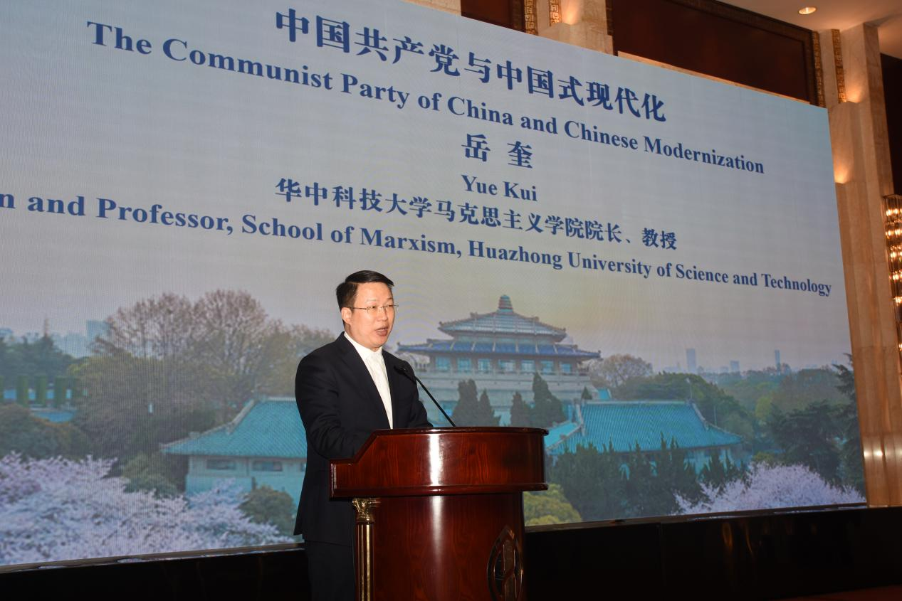 岳奎教授以“中国共产党与中国式现代化”为题,从历史、现在和未来三个维度,即中国式现代化与早期中国现代化、中国共产党与中国式现代化和中国式现代正奔跑在路上详细论述了中国共产党与中国式现代化的关系,从历史逻辑论述中国式现代化的本质特征是中国共产党领导以及中国式现代化与马克思主义中国化等关系等。