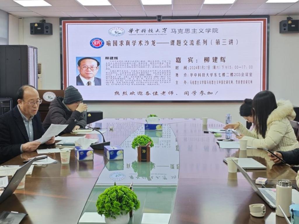 (通讯员:王雨晨)1月27日下午,喻园求真学术沙龙——课题交流系列第三讲在东七楼203会议室顺利开讲。中共中央党校(国家行政学院)教授、博士生导师、中央“马克思主义理论研究和建设工程”首席专家、国家社科基金“党史党建”学科评审组专家、全国宣传文化系统“四个一批”入选人才、国家高层次人才特殊支持计划领军人才、享受国务院政府特殊津贴专家柳建辉应邀为我院师生作课题交流指导。本次学术沙龙由马克思主义中国化研究所所长、教授文红玉主持,马克思主义学院副院长谭亚莉、党的建设研究所所长李翔、以及部分青年教师、硕博生参加交流。