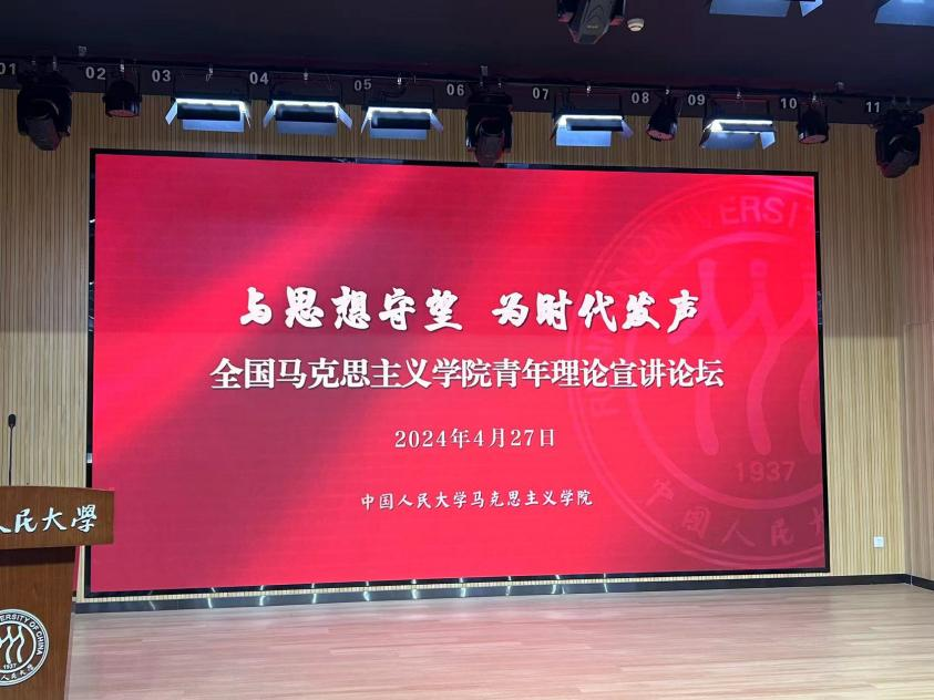 (通讯员:许英健)4月27日,全国马克思主义学院青年理论宣讲论坛在中国人民大学成功举办。论坛以“与思想守望,为时代发声”为主题,由中国人民大学马院发起,包括30余所全国重点马院在内的40余所高校、百余名师生代表参加。华中科技大学马克思主义学院青年教师江文路、硕士生许英健应邀参加会议,共同交流研讨青年理论宣讲重要议题,学习借鉴全国高校宝贵经验,进一步传播好华科大马院声音。