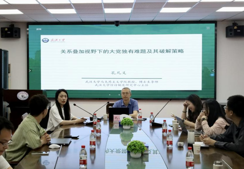 (通讯员:徐薇 刘长夏)6月19日晚,第126期喻园求真学术讲座在东七楼203会议室顺利举办。本次讲座特邀武汉大学马克思主义学院教授、博士生导师、武汉大学信访制度研究中心主任、湖北省政治学会副秘书长、湖北省廉洁文化研究会常务理事孔凡义主讲。马克思主义学院党的建设研究所所长李翔、青年教师王锐、江文路以及部分硕博研究生参会交流。讲座由青年教师翁俊芳主持。