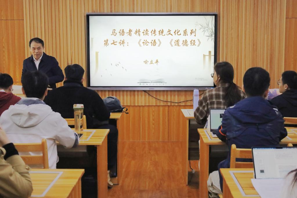 (通讯员:曾雨涵)10月30日上午,马语者精读传统文化系列《论语》《道德经》第七讲于东七楼207会议室成功举办。本次讲座由我院特聘教授喻立平基于第六讲的内容,继续对《论语》进行深度讲解,部分硕博研究生参与本次讲座,讲座由马克思主义学院院长岳奎主持。