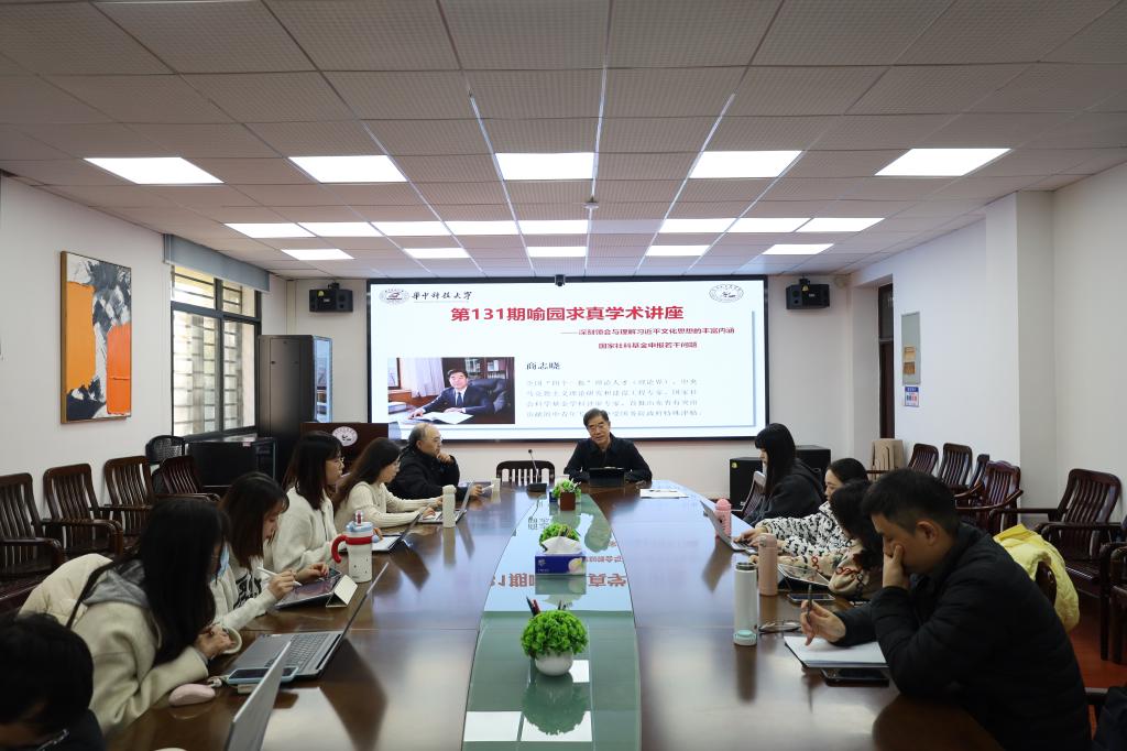 (通讯员:吴洁)11月29日下午,第131期喻园求真学术讲座在东七楼203会议室顺利举办。本次讲座特邀山东省高校当代中国马克思主义研究院院长、山东师范大学教授商志晓主讲。华中科技大学马克思主义学院青年教师代表及部分硕博研究生参加会议。讲座由华中科技大学马克思主义学院党的建设研究所所长李翔主持。