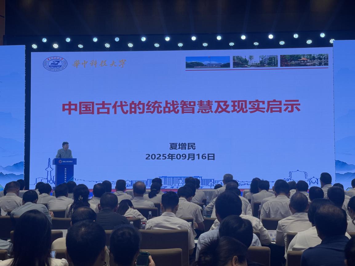 我院教授、湖北省统一战线理论研究会统一战线基础理论研究基地主任夏增民老师应邀出席论坛,并以“中国古代的统战智慧及现实启示”为题做主旨发言。他指出,中国古代统战智慧与新时代统战工作“大团结大联合”的核心要求高度契合;立足中国特色社会主义制度优势,对其进行创造性转化,能够为新时代统战工作注入更强劲的发展动力。他特别强调,需在批判性继承古代“团结多元、包容差异、务实应变”等智慧精髓的基础上,持续强化新时代统战工作的独特优势。这一优势既深深植根于中华文明“和合共生”的历史基因,又牢牢立足于中国特色社会主义制度的本质要求,最终将为实现中华民族伟大复兴凝聚起最广泛的智慧与磅礴力量。