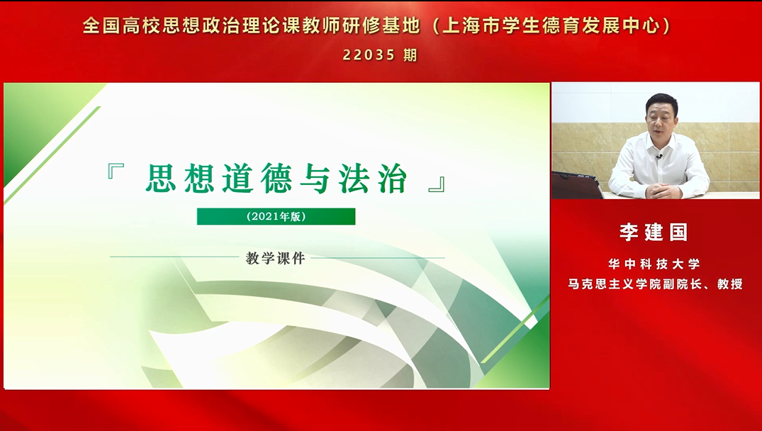 2022年9月19日下午,受教育部委托,全国高校思想政治理论课教师研修基地(上海市学生德育发展中心)举办了“思想道德与法治”课集体备课活动。此次集体备课活动围绕“思想道德与法治”课第六个专题展开,并面向全国高校思政课教师进行同步直播。我院李建国教授受邀参加备课会并对“遵守道德规范 锤炼道德品格”专题进行了一个半小时的示范说课。