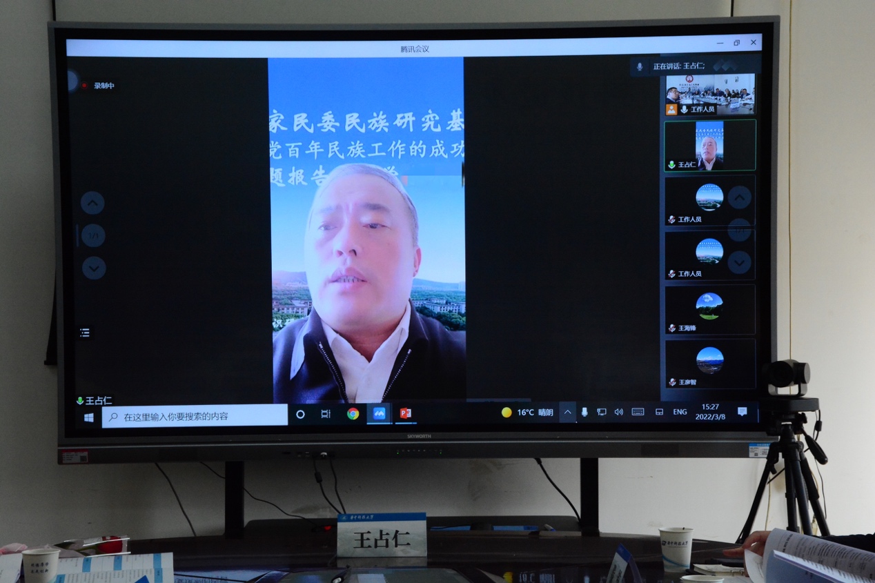 西藏民族大学马克思主义学院院长王彦智教授高度赞扬了课题组当前的研究成果,认为课题组的开题报告下了大功夫,基础牢固。对课题的进一步推进,他指出,中国共产党百年民族工作成功经验的研究,要突出对马克思主义“五观”、“两论”,即马克思主义历史观、国家观、民族观、文化观、宗教观以及唯物论和无神论的理解。要从中华民族伟大复兴战略高度,准确把握党的民族工作的历史方位,把握民族工作“三个赋予”、“一个有利于”的高质量发展要求。此外,民族工作做细做实党的民族工作,重点还是在基层一线,我们要积极关注民族地区基层党这个组织建设问题。