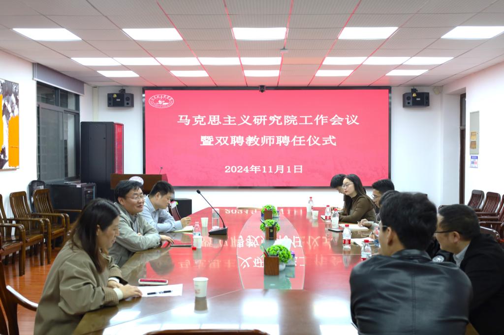 11月1日晚,华中科技大学马克思主义研究院工作会议暨双聘教师聘任仪式于东七楼203会议室举行。马克思主义学院中国近现代史纲要教研室主任夏增民、本科教务员代利敏以及“形势与政策”教研中心部分双聘教师参加会议。会议由马克思主义研究院副院长梁浩伟主持。