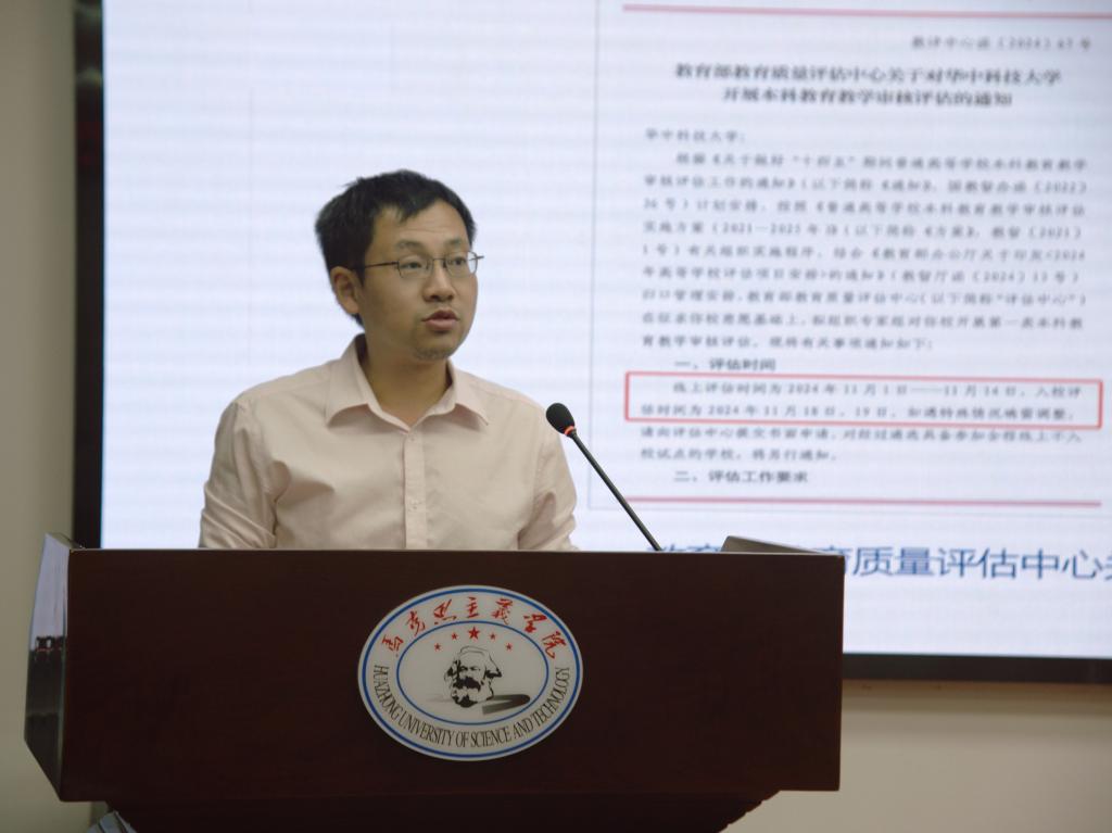(通讯员:王姝惠)10月8日晚,华中科技大学马克思主义学院本科教育教学审核评估迎评工作部署会在东七楼203会议室召开。马克思主义学院党政联席会成员、各本科教研室主任参加会议。会议由学院党委书记王学东主持。