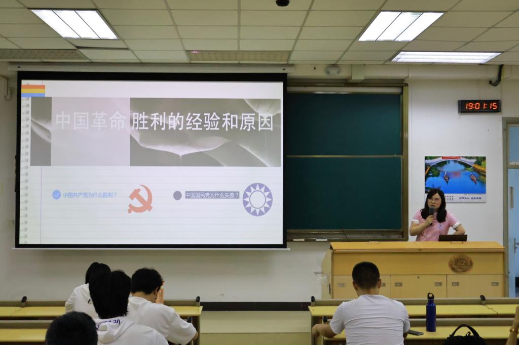 (通讯员:牟倩)近日,华中科技大学马克思主义学院倾力打造的“四史”系列精品选修课程《百年中国》在为期十周的持续推进后顺利结课。5月22日晚,《百年中国》第十讲于东九教学楼C203教室如期开讲。马克思主义学院青年教师高作楠以《中国革命胜利的经验和原因》为主题,依托详实史料,讲述了以蒋介石为首的国民党统治集团如何将自己置于中国人民的对立面,深入剖析了中国共产党取得国共内战胜利的深刻社会根源和深厚群众基础,揭示了中国人民英勇斗争、走上反帝反封建的历史道路的艰辛不易。