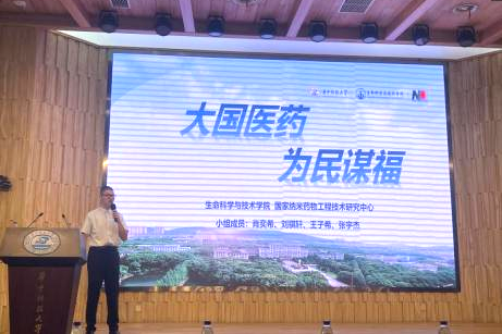 生命科学与技术学院的同学演讲《大国医药 为民谋福》,立足新中国成立后的时代变迁,向观众展现大国医药中国化、时代化、现代化的历程;自制微电影《稻花香里说丰年》,再现袁隆平院士数十年躬耕试验田,使“杂交水稻”实现“从0到1”的艰辛探索。